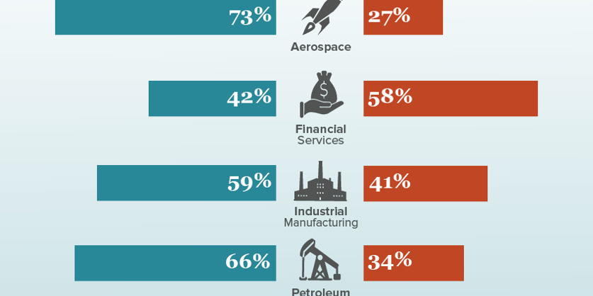 Supply management groups realize the importance of a shift toward strategic practices, but the transition is slow. Across industries, we’re seeing 3% growth in the strategic employee balance, with companies reporting 62% tactical employees and 38% strategic employees.