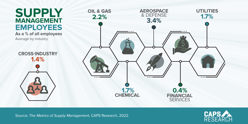 Across industries, only 1.4% of the total headcount is supply management employees.